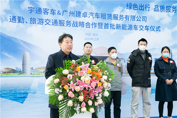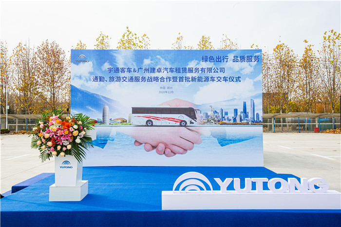 2020年12月12日,郑州宇通客车有限公司携手广州建卓汽车租赁服务有限公司(以下简称“广州建卓”)在宇通公司厂区隆重举行了通勤、旅游交通服务战略合作暨首批新能源车交车仪式。